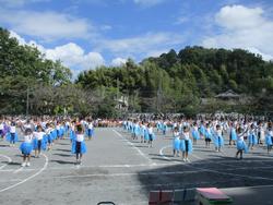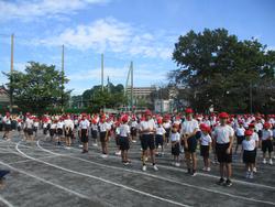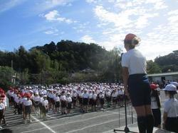 開会式の後、みんなで準備体操をしました。
