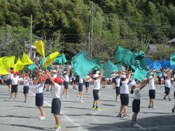 3・4年生は旗を持ち、みんなでタイミングを合わせて演技を行いました。