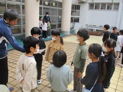まずは校庭になかマイ班で集まり、6年生がそうじの仕方や安全に行うための約束を班に伝えました。