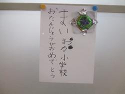 昼休みには1年生が「舞岡小学校お誕生日おめでとう」とプレゼントを職員室に持ってきてくれました。
