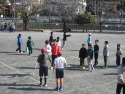 今日はとてもよい天気です。中休みに健康な体をつくるために長縄チャレンジを行いました。