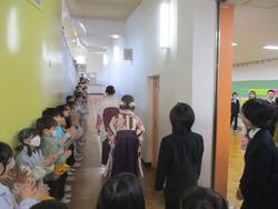 動画を見た後に、スロープを使って卒業生を見送りました。