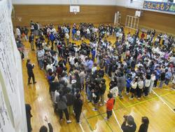 今年度と来年度の登校班の班長が体育館に集まり班長会議を行いました。