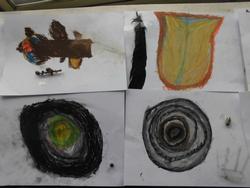 どれも鮮やかでカラフルな作品でした!油の表面に浮く螺鈿色のデザインを上手に描くことができていました。