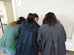 3クラス入り混じって、卒業アルバムにメッセージを書き合っているようです。