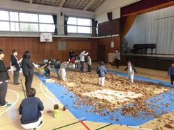 体育館全体を公園に見立てて、葉っぱのシャワー&お風呂にして楽しみました♪ また、松ぼっくりやどんぐりをつかったおもちゃでも遊んでみました。