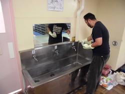 会長自ら、ご出勤前の朝の時間に、昇降口前のシンクをきれいにしていただきました。