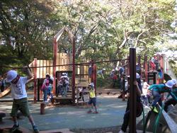 10月25日に四季の森公園遠足に行きました。行きは1時間近く歩いて四季の森公園に向かったので、着いた時点で少し疲れていた人もいたようですが、遊ぼうタイムでは遊具で遊んだり、ジャンボすべり台をすべったりと、楽しく遊ぶことができました。青空の下で食べるお弁当も美味しかったようで、友だちと笑顔で食べる姿を見ることができました。その後は、秋探しをして様々なものを拾い、バスで学校に帰ってきました。楽しい1日になりました。