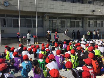 港南消防署の方から強い地震があったときの身の守り方を教えてもらい、起震車による震度6弱の地震を体験しました。子ども達は、強い揺れの中、自分の体を丸くすることがやっとでした。いつ来るか分からない地震ですが、今回学んだことを生かし、もしもの時の備えになることを期待しています。