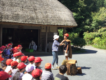 9月26日(金)に、舞岡公園へ古民家見学に行きました。昔の人々の暮らしを知り、昔遊びの体験をしました。晴天にも恵まれ、ルールを守って楽しく学ぶことができました。