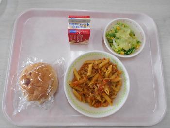 今日は令和8年度初めての給食、1年生にとっては小学校生活で初めての給食でした。今日のメニューは、チーズパン、ペンネミートソース、コーンサラダでした。1年生は3時間目から身支度の仕方、準備の仕方、給食時の約束等の確認をし、初めての給食に向けて準備をしました。時間になると、まずは当番の子が給食室に給食をとりに行きます。初めてなので、保護者のボランティアの方が支援してくださいました。また、6年生や教職員もお手伝いをしました。教室まで運んでくると、牛乳やパンの配布、おかずの配膳は支援者が行い、1年生は自分の席で給食が運ばれてくるのを待ちます。2クラスとも静かにきちんと待っていて、とても立派でした。配膳が終わるといよいよ食事、「いただきます!!」の挨拶をして食べ始めました。「おいしい!!」「あったかい。」「野菜もおいしいよ。」初めての給食に、嬉しそうでした。食事中も落ち着いて食べていて、素晴らしかったです。