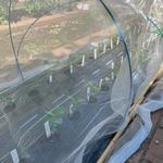 3年の大豆。左の1組は7/19に、右の2組は7/20に種をまきました。一日違うだけで結構育ち方が違うことを知りました。虫よけのためにトンネル栽培にしました。たくさんの大豆が実りますように。(大豆専用の肥料を投入しています)
