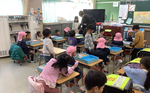 23日には、3組がもうすぐ1年生になる保育園の子どもたちに、ランドセルの背負い方を教えたりお道具箱の中身を紹介したりしました。
