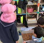 その後、2組では、生活科で作成したどんぐりのおもちゃを使って一緒に遊びました。