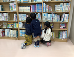 17日には、1組がグループごとに図書館などの学校内を案内しました。