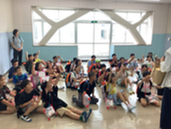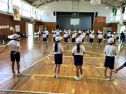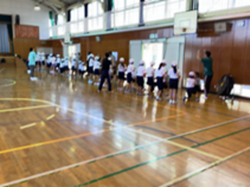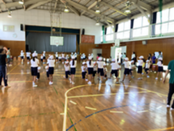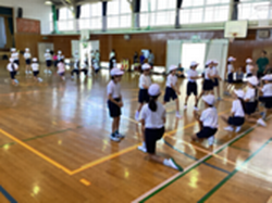 ・体育館と校庭でスポーツテストを行いました。校庭では、ソフトボール投げをしました。体育館では、上体起こし、長座体前屈、反復横とび、立ち幅跳びを行いました。上の学年がお手本を示したり、記録をとったりしながら互いの良い関係を築きました。熱中症対策として水筒を持参し、適宜飲める体制を作っています。引き続き、ご家庭でも熱中症対策へのご協力をお願いします。