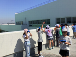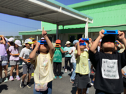 ・すごい「太陽が見える。」と喜びの声をあげたのは、3年生の理科の学習でした。遮光板を使って太陽を見ました。