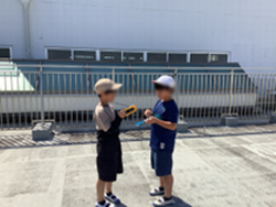 ・先日、畑に植えた野菜の水やりをしました。つるが伸び、ぐんぐん成長している様子をしっかりと観察をしながら水をたくさんあげました。「大きくなってね。」と声をかけながら成長を見守る様子が心にのこりました。