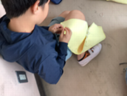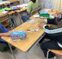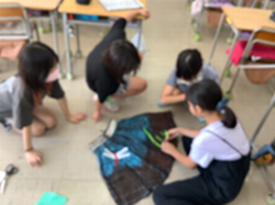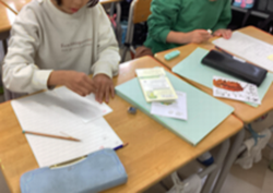 ・今で学習した技を使ってネームプレートを作る学習をしています。今日は、長さを図りながら布にチャコペンで印をしました。これまでの学習を想起し、一生懸命課題に取り組みました。途中で分からないところを互いに教え合える姿がとてもすてきでした。完成した作品を見るのが今から楽しみです。