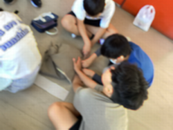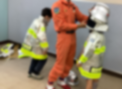 ・横浜市民防災センターへ行いきました。消火体験では、火事を発見した時は大きな声で周囲に伝えることを学んだり、実際に消火器で消化体験をしたりしました。