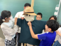・お米を守るために各クラスでかかしをつくりました。子どもたちが家庭科で学んだ技能を生かして一生懸命手作りする姿に、心が温かくなりました。