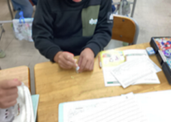 「見て見て。」「いいね。」「ここは、どうすればいい。」「ここはね…。」と仲間と対話をしながら次から次へと作品を完成させる子どもたち。この時間は生活科でおもちゃ作りをしているシーンでした。体験して、気付き、さらに体験をして気付き…という過程を繰り返し、自分が納得する作品を創るからこそ、満足そして自信いっぱいの作品が完成したのだと感じました。