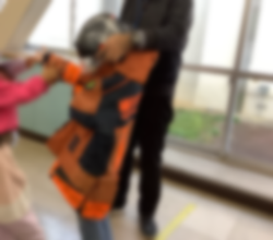 ・吉田出張所の方を講師にお招きして、消防車を見せていただいたり、防火服を着用させていただいたりしました。
