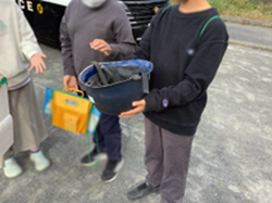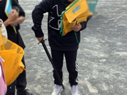 ・「見て見て。」と声をかけてくれたのは、2年生。先日収穫したサツマイモをクラスみんなで分け、今日は持ち帰る日でした。「スィートポテトにする。」など、すでに家庭で調理のイメージまで持っている様子でした。