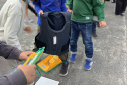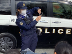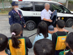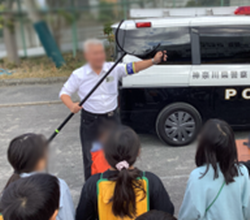 ・「みんな、これは何か分かるかな?」「手錠。」「盾。」「捕まえる時に使う道具。」など、子どもたちが夢中になって答えたのは、おまわりさんが見せてくださった数々の道具でした。今日は、戸塚警察の方をお招きして警察官の仕事について教えていただきました。110番をすると、どのように警察へ連絡がつながるのか、警察官は日頃どのような仕事をしているのか、知っているようで知らないことをたくさん教えていただきました。子どもたちは、教えていただく一つ一つを一生懸命メモを取りながら聞き、たくさんの学びを得ていました。