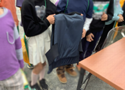 ・「ソーイングはじめの一歩」でかがりぬいや、ボタンつけに挑戦しました。思うように進められなくても、諦めずに取り組んでいる姿が輝いていました。