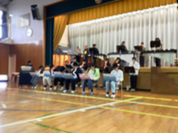 ・来週の音楽朝会へ向けて体育館で練習をしました。広いステージ上で仲間の音を聴きながら心を一つに音を合わせて、繰り返し練習をしていました。来週の発表が楽しみです。
