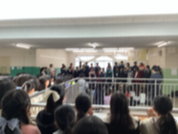 ・閉校式に向けて有志実行委員が準備を進めています。今日は、朝会でスローガンを発表しました。全校みんなで「特心楽笑」といって気持ちを一つにしました。