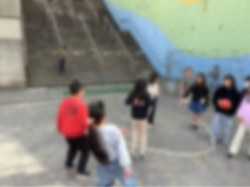 ・相手が投げたボールをコーンでキャッチをするアイスクリームキャッチ集会をしました。互いに温かい声をかけ合いながらたてわりの仲をより一層深めました。