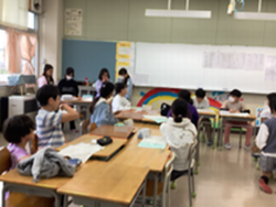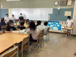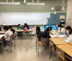 ・どの室もたくさんの笑顔が生まれました。お題を言うことに戸惑う人を見かけると、その人のもとにさっとかけより、膝を落としてその人の目線に合わせて助言する心遣いに心が温まりました。なかよしフェスを終えて教室へ帰る際も、「また遊ぼうね。」「うん。ありがとう。」と関わりを楽しんでいる様子がうかがえました。今回の成功の裏には、6年生の準備や運営する力が大きく貢献しています。