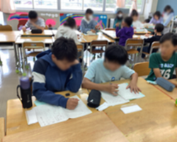 ・昼過ぎに学校へ帰校しました。5校時には、各クラスで振り返りをしました。多くの学級が舞句を作っていました。来校の際は、ぜひ、ご覧ください。