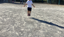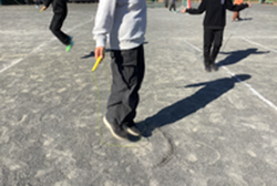 ・このように、子どもたちの柔軟なアイデアは様々な技をつくりあげ、とても興味深いです。教室に戻る途中に「一生懸命なわとびにチャレンジしてどうですか?」と尋ねると「前は、跳べなかったからあまり好きじゃなかった。けど、ずっとやってたら跳べるようになったから、今は楽しい。」と語った言葉に心を打たれました。