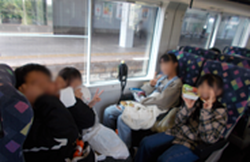 ・待ちに待った修学旅行1日目。今日は、戸塚駅に集合しました。専用列車に乗車をしていざ、日光へ。車内では、向かい合わせの席にしてカードゲーム、会話を楽しみました。