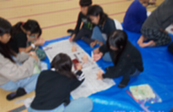 ・各実行委員で活動内容を計画し、見通しをもちながら進めています。運営では、会の司会役を中心に練習をしていました。オフィシャルの場にふさわしい言葉遣い、当日のみんなの思いを高める言葉を厳選しながら、本番さながらに準備を進めています。仲間同士で「もう少しゆっくり話さないと、聞いている人に伝わらないよ。」「じゃ、もう一回やるから聞いてて。」と練習を繰り返し、磨きをかけていました。しおり作成でも、読みやすい字を心がけゆっくり美しく書き表そうと仲間同士でアドバイスをしています。指示を待って活動するのではなく、自分たちで考えて主体的に行動し、よりよいものを創ろうと協働的に関わる姿は、脳裏に焼き付きます。ぜひ、お子さんのしおりや当日の出発式などをご覧いただけましたら幸いです。