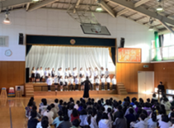 ・3年生の合奏と合唱が終わると、全校で歌を歌いました。今日は特別に5年生がリコーダー奏を行い、その他の学年で合唱をしました。南舞岡小学校全校が一つになる瞬間でした。