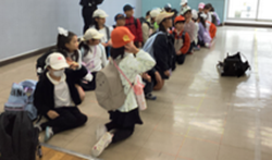 ・空気が澄んで遠くの山々が見渡せる目覚めのよい朝、「おはようございます。」といつもと変わらぬ元気なあいさつで子どもたちは登校しました。クラスごとに並び、素早く出発式の準備に臨む子どもたちの姿は、いつも以上に大きく見えました。8:45予定通り、学校を出発。湘南台文化センタープラネタリウムを見学し終えると、日本丸へ到着しました。まずは日本丸の歴史、役割など座学を学び、日本丸の理解を深めた後、船の先端部分に乗る訓練、船内案内をしていただきました。