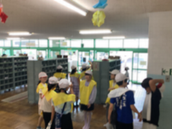 ・スポーツフェスティバル閉会式後、バルーンリリースをしてハッピー思い出プロジェクト開会宣言をしました。一人一つ風船をもち、「つなが。」「レインボー。」の合図と共に、風船を空へ放ちました。