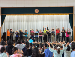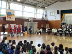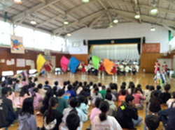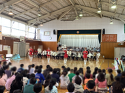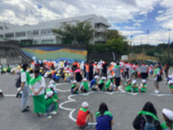 ・地域の方、保護者の方、卒業生と1,2年生が共同でチェッコリー玉入れをしました。多くの方に参加していただき、笑顔いっぱいで踊り、玉を投げる姿に、会場からも大きな声援や拍手が送られました。短い時間ではありましたが、児童、地域の方、保護者の方、卒業生が一体となるすてきな時間となりました。