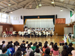 ・待ちに待った「みなまいコンサート」の日が来ました。残念ながら前日の雨、日中にかけて雨予報だったため、体育館での実施となりました。コンサートは、動物環境委員会が中心となって、全校が盛り上がれるような企画を立て、運営を行いました。当日の司会も堂々たる姿でした。