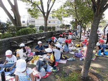 お天気空の下で、みんなでお弁当…おいしいね!