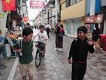 その後は、自転車の乗り方啓発CMの撮影です。学校帰りの子どもたちの脇を自転車がすり抜けていくというストーリーで「あ、危ない」「自転車は降りて通行してください」という白熱の演技をGIGA端末で撮影していました。商店街の理事長さんや役員さんが立ち会ってくださり、商店街公認CMを撮影できました。いつもありがとうございます。