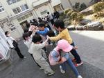 今週は「つながる遊び」週間で中休みに体育館で国際理解教室講師のアネット先生(ザンビア出身)に紹介していただいた遊びを体験しています。
