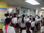 台風一過で涼しくなるかと思いきや、今週も暑さが続くとの天気予報にうんざりしている今日この頃です。先週金曜日には台風の大雨の中、横浜橋通商店街の理事長さんにおいでいただき、4年生がいろいろな質問をしました。「横浜橋」という名前の由来は何ですか。なぜここに商店街ができたのですか。外国の商品を売る店は何件ありますか、今のテーマソングは何代目ですかなど、たくさんの質問に丁寧に答えてくださいました。その際、理事長さんから「困りごと相談」があり、自転車を降りて押さない人がいる、道路に商品を並べるため通行の妨げになっているなどの話がありました。毎日商店街を通って通学する子もたくさんいるので、状況はみなよく分かっています。4年生はこれから商店街応援隊としていろいろなことに取り組んでいくようです。どんな活動になるのか楽しみです。ちなみに今のテーマソングはポケモンのサトシの声を担当する声優の松本梨香さんが歌っています。松本さんは南吉田小学校の卒業生で、商店街のイベントにも参加しています。