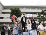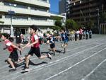低学年徒競走はカメラマン多めです。力強い応援合戦で全員が盛り上がります。来賓の皆様の投票の結果応援賞は紅組でした。