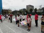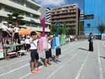 晴天に恵まれて今年も健民祭が盛大に行われました。開会式には各町内会長さんと南区長も参加し、みんなでラジオ体操をしてスタートです。玉入れ、防災リレー、じゃんけん大会、徒競走、○×クイズ、スプーン競技、パン食い競争と大人も子どもも大勢参加し大いに盛り上がりました。300人くらいの参加があったそうです。今年は4年生の有志が○×クイズのプログラムで「防災クイズ」と「南吉田小クイズ」を出題させてもらいました。3年生の時に考えた防災検定クイズからの出題では、「地震の最大震度は7である」「防災備蓄庫の乾パンは2000食以上ある」など回答が分かれる問題も出されていました。休み時間に運動会の練習の合間を縫ってリハーサルをしていました。健民祭に参加した地域の皆様お疲れ様でした。クイズ隊の4年生もありがとうございました。