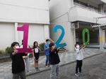 運動会集会で今年のスローガンやマスコット、応援団長が発表されました。スローガンは「かがやけ120」~一人一人が主役 ニコニコ笑顔で みんなでつながってつくりあげよう~です。創立120周年のお祝いの意味を込めてこのスローガンに決まりました。マスコットは120周年MYワールドくんの両脇にまるい朱雀と白虎が描かれたかわいらしいものです。みんなが描いた絵の中からロイロのアンケートで選ばれました。そして団長が自己紹介と決意表明です。進行プロジェクトのみなさんありがとうございます。